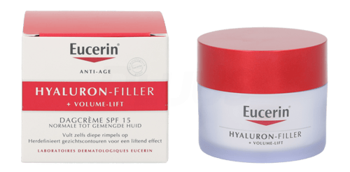 Eucerin Hyaluron-Filler + Volume-Lift Day Cream har SPF 15 og gir bredspektret UV-beskyttelse - Ideell under makeup.