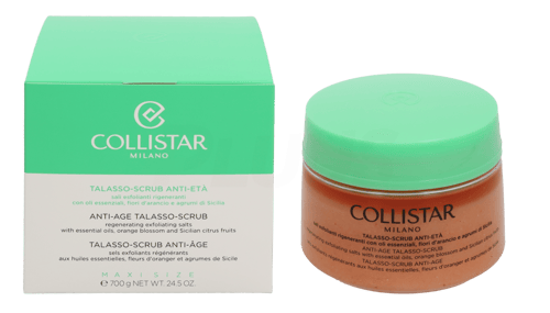 Collistar Anti-Age Talasso Scrub 700gr With Essential Oils, Orange Blossom And Sicilian Citrus Fruits er en rik, kremet skrubb til alle hudtyper. Den fjerner hudens døde celler effektivt i de øverste lag, noe som etterlater huden frisk og silkemyk. Bruk skrubben et par ganger i uken som en del av din hudpleierutine og gi deg selv et par minutters luksus og velvære i en travel hverdag.