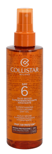Går du etter et naturlig, gyldent look, som stille og rolig utvikler seg utover dagen, er det Collistar Supertanning Moisturizing Dry Oil SPF6 200ml Speciale Abbronzatura Perfetta - Low Protection, du skal ha fatt i. Denne selvbruner gir huden en vakker sommerkulør og matcher en normal til mørk hudtone.