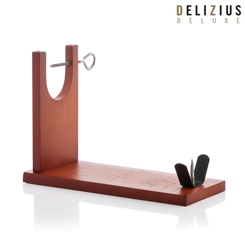 Og som en del av settet, anbefaler vi å inkludere vårt overveldende skinkestativ av tre, som har stort grep og stabilitet. Dette motstandsdyktige og langvarige skinkestativet av høy kvalitet er veldig nyttig for å skjære skinke trygt og med full enkelhet.