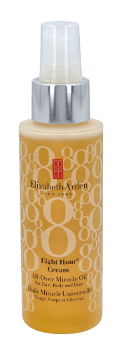 • Elizabeth Arden Eight Hour Cream All Over Miracle Oil 100ml For Face, Body And Hair er til daglig bruk og kan brukes på alle hudtyper. Den er spesielt bra til tørr og skadet hud. Den tilfører fuktighet og holder huden myk, sund og velpleiet. Opplagt å bruke etter hårfjerning, da risiko for irritasjon og inngrodde hår minskes. Teksturen fukter og trenger fort inn uten å føles fet på huden.